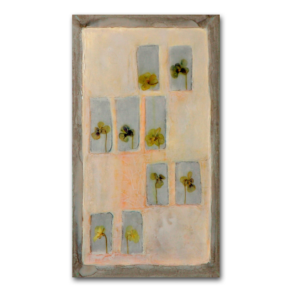 Kreide, Acryl und getrocknete Blumen auf Leinwand