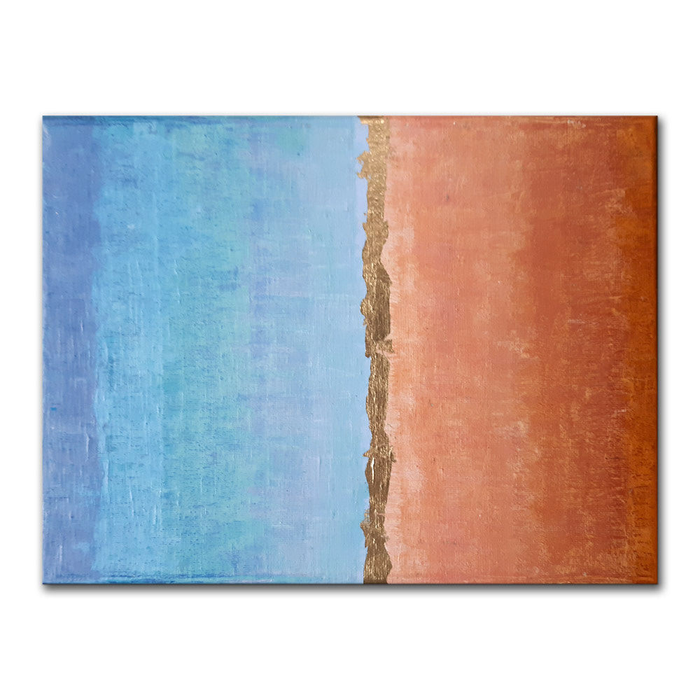 Acryl und Überlebensfolie / Blattsilber / Blattgold auf Leinwand / Holz